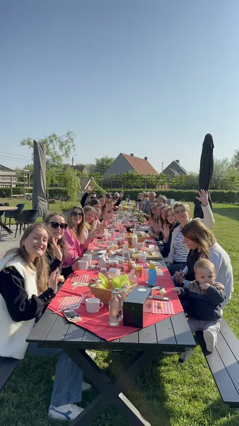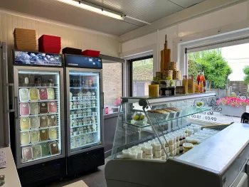 Het zonnige hoeveterras nodigt uit om te genieten van een heerlijk hoeve-ijsje of andere huisbereide dessertjes.